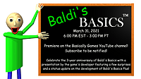 Celebrate the 3-year anniversary of Baldi's Basics with a presentation by the game's developer featuring a few surprises and a status update on the development of Baldi's Basics Plus! Premieres on Mar...